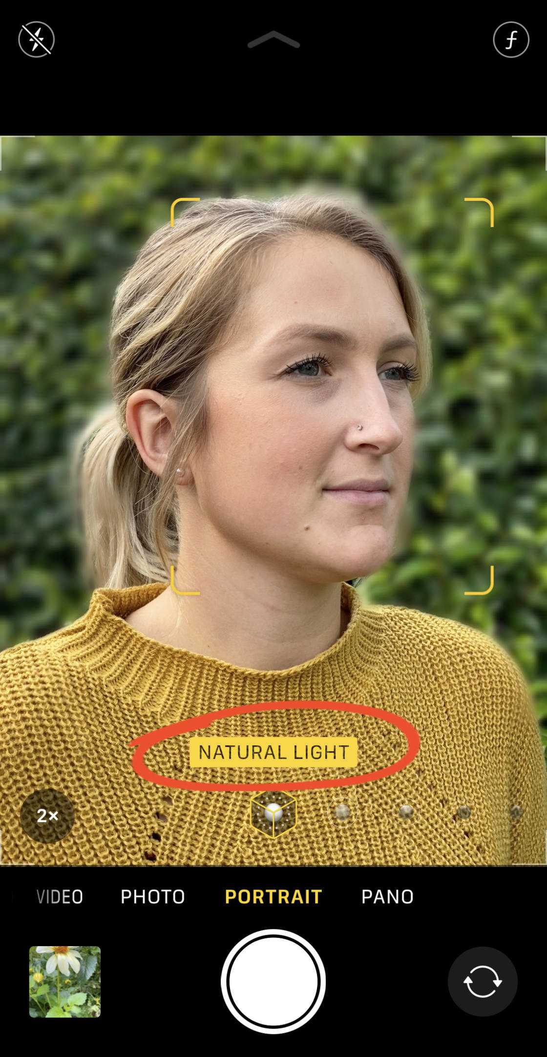 Скомпонуйте фотографию и дождитесь, пока слова Естественный свет (или Эффект глубины на iPhone 7 Plus) не появятся желтым цветом.