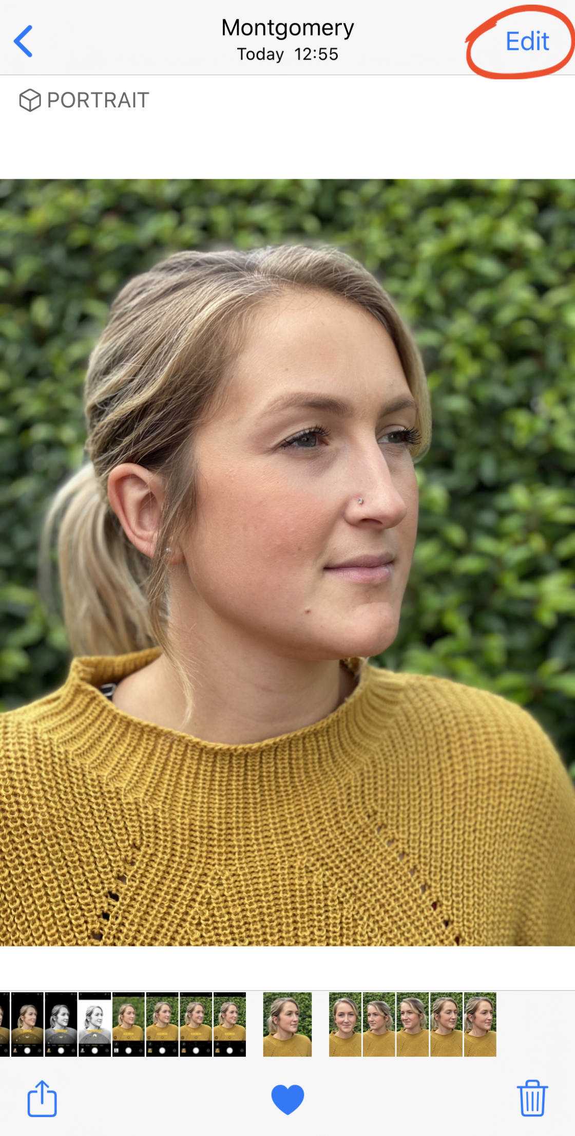 Начните с открытия портретной фотографии в приложении Фотографии, затем нажмите Редактировать.