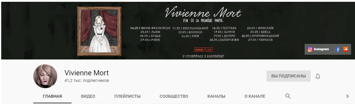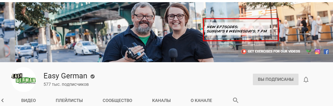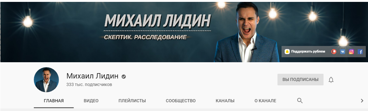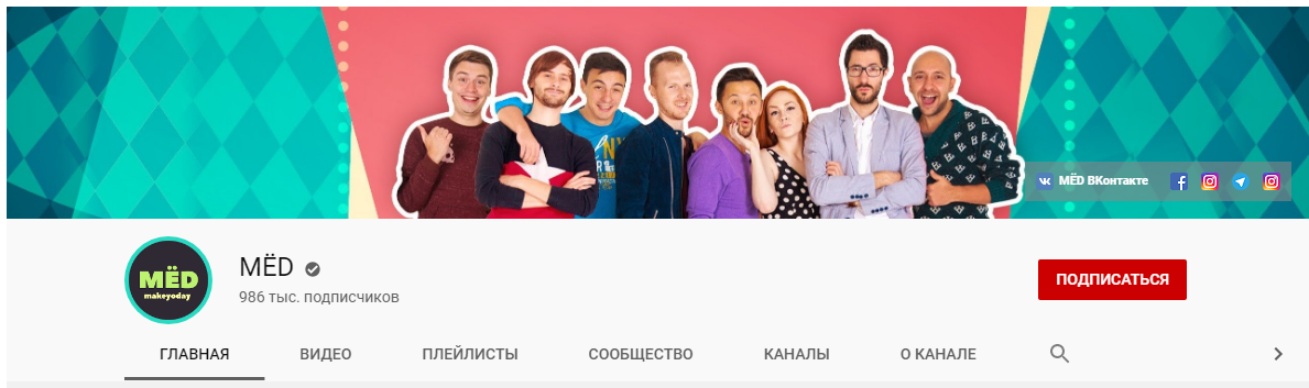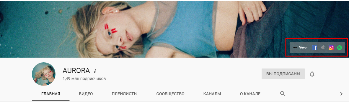 Вместо ссылок на социальные сети некоторые каналы размещают дополнительную кнопку подписки на канал:
