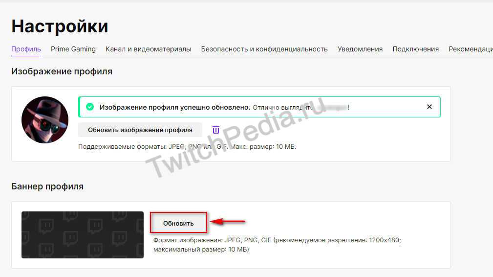 - Вы откроете раздел баннера профиля, вам нужно нажать кнопку «Обновить»;
