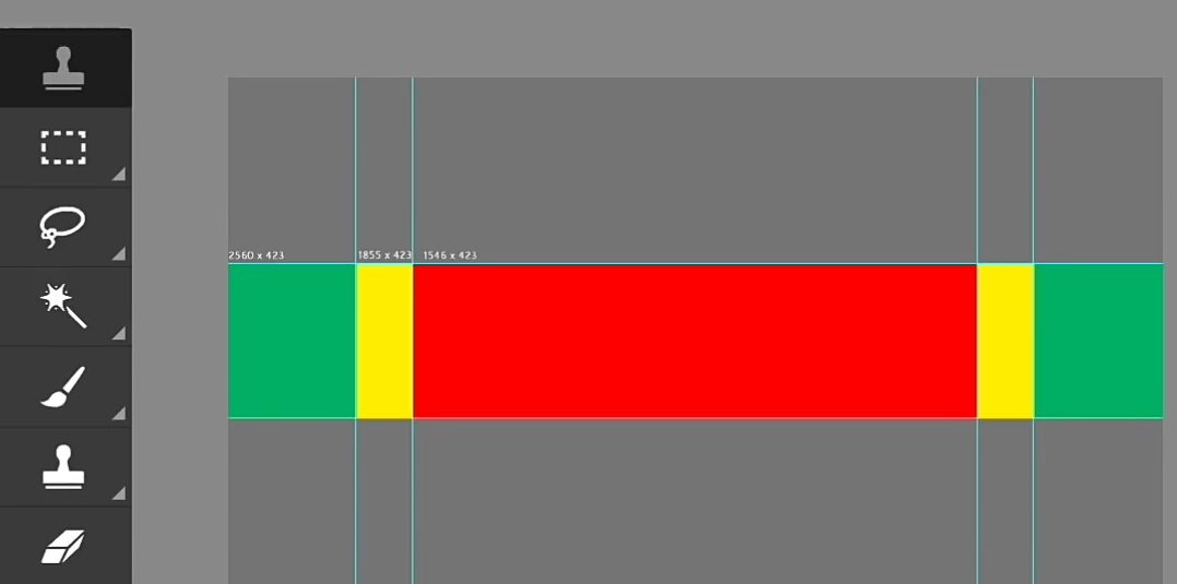 - Навести курсор на линейку (вертикальную или горизонтальную) и вытянуть из них линию. Обозначить линиями границу «безопасной зоны» (размер 1546 x 423). Здесь располагаем основную информацию.