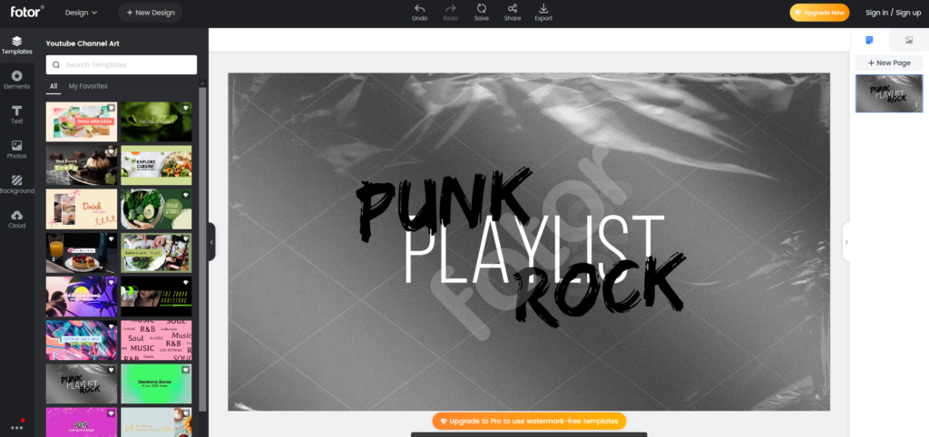 Fotor – еще один бесплатный сервис, аналогичный предыдущему. Для работы в нем потребуется зарегистрировать аккаунт, после чего откроется доступ к различным шаблонам. Сервис предоставляет огромное количество всевозможных решений, но большинство из них доступно только для Pro-аккаунтов.
