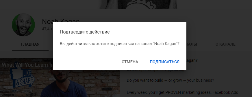 Такая ссылка получится, если добавить к ссылке на канал «?sub_confirmation = 1» в конец URL.