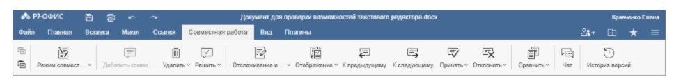В облачной версии «Р7-Офис» можно настроить совместную работу над документом.