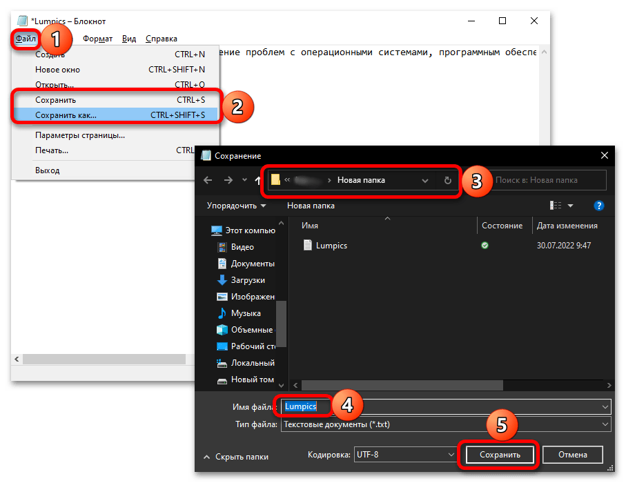 После того, как ввод текста или иной информации будет завершен, нужно сохранить новый файл. Для этого необходимо кликнуть в левом верхнем углу «Файл», потом «Сохранить».