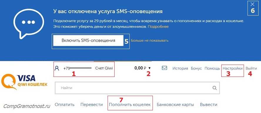 - Зарегистрируйте кошелек, если это ещё не сделано. Для этого необходимо будет ввести номер мобильного и пароль, пришедший в смс.