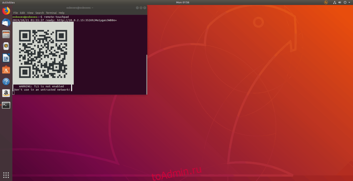 Чтобы запустить локальный сервер тачпада в сети с помощью Snap версии Remote Touchpad, запустите команду remote-touchpad. Не запускайте приложение с правами root! Ваш компьютер с Linux не распознает команду!
