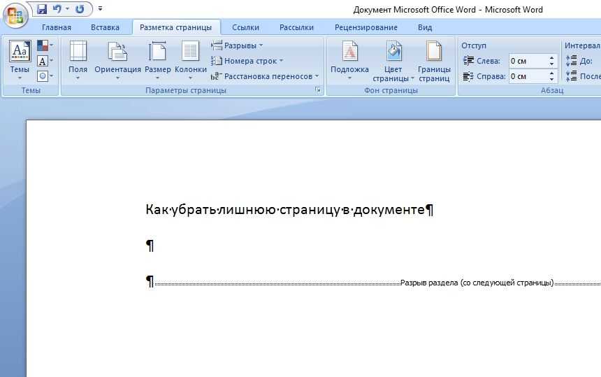 Если символ появился в конце документа, установите курсор перед символом разрыва раздела → нажмите Delete.