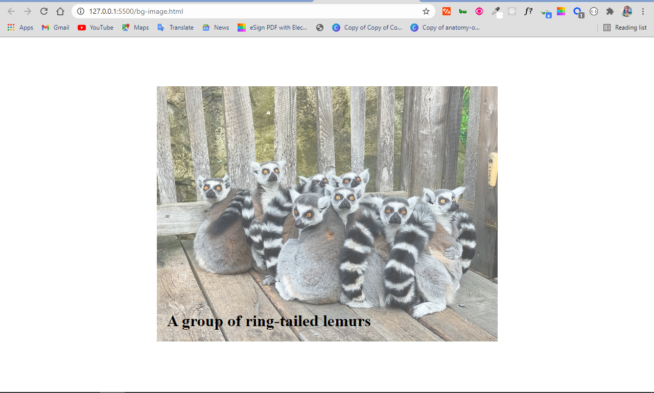 The container element with the class of is positioned , so you can position the text within it. This will push the text to the top-left corner of the image. The and properties are then used to push the text to the bottom-left corner of the image.
