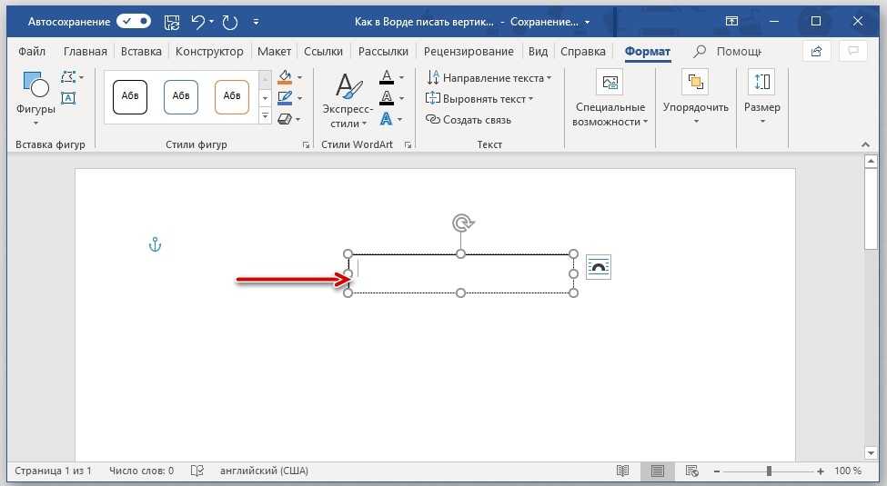 - Поставьте курсор мыши в место вставки вертикального текста.