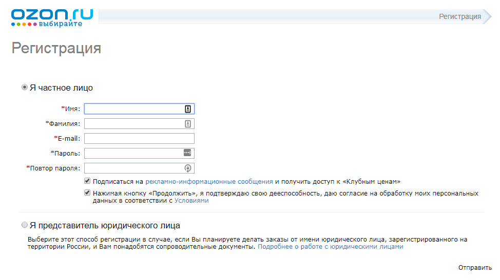 Чтобы воспользоваться личным кабинетом ОЗОН, пройдите короткую регистрацию. Для этого выберете товар и нажмите возле него клавишу «Делаю заказ впервые».