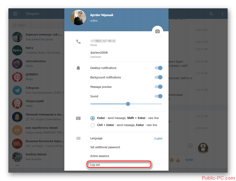 Как видите, выйти из веб-версии Телеграмма даже проще, нежели из специализированного приложения для компьютера.