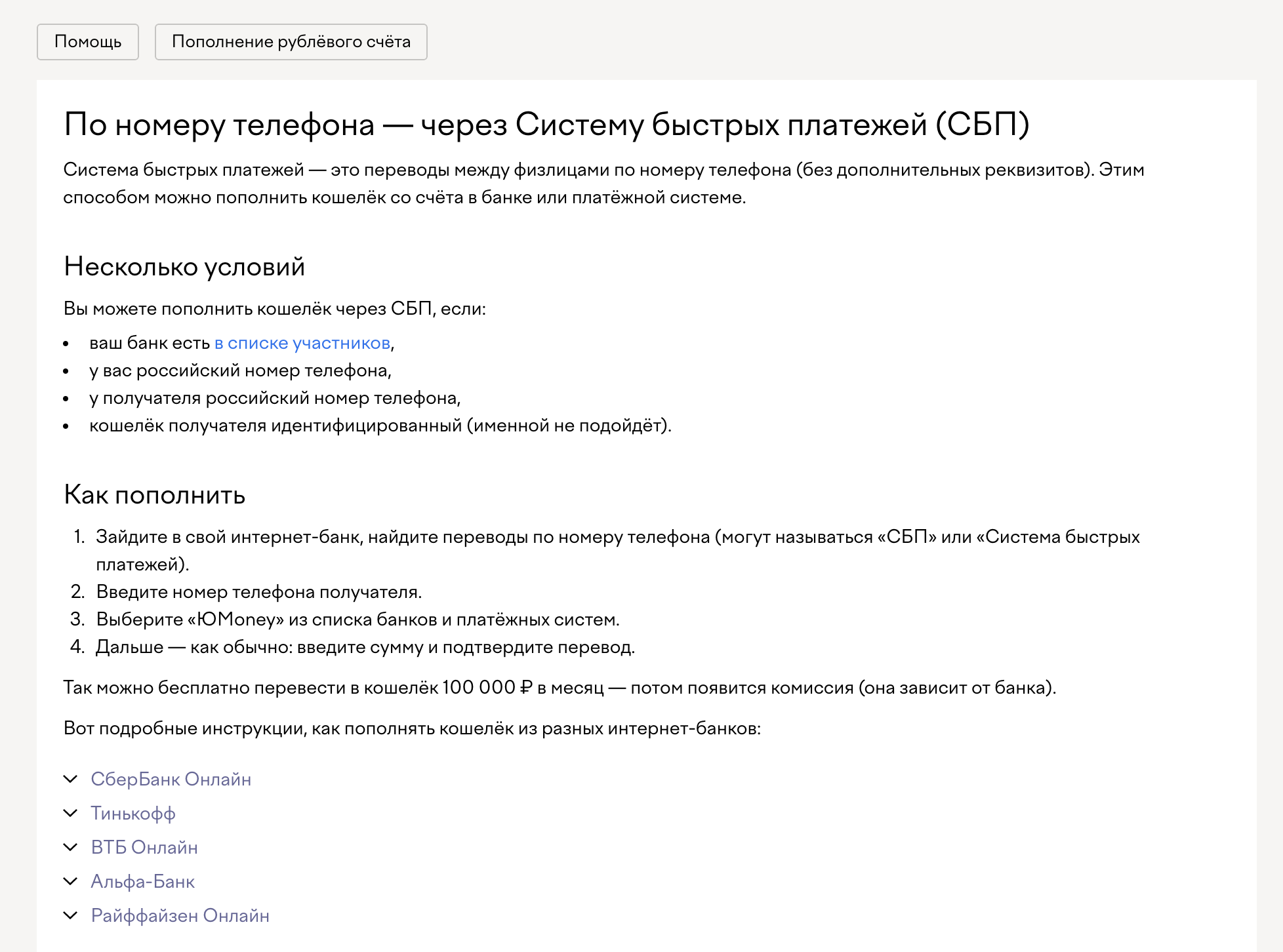 Обратите внимание! В Юмани не нужно специально выполнять дополнительных действий для подключения СБП, это функционал активирован на платформе в автоматическом режиме