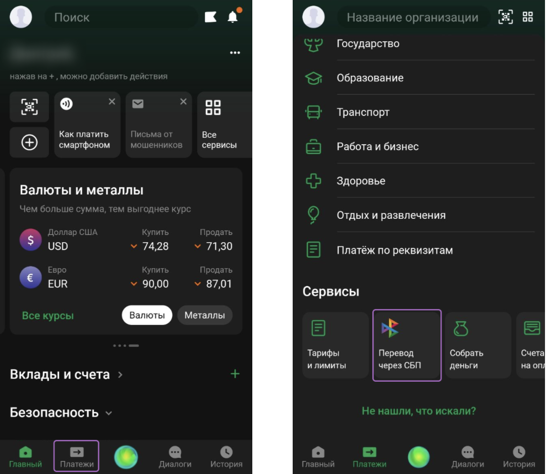 В сервисе быстрых платежей реализована возможность совершать переводы между счетами физических лиц. Также здесь предусмотрены и платежи в пользу юридических лиц с использованием QR-кода. Такой инструмент позволяет оперативно выполнить перевод получателю, без введения лишних данных.