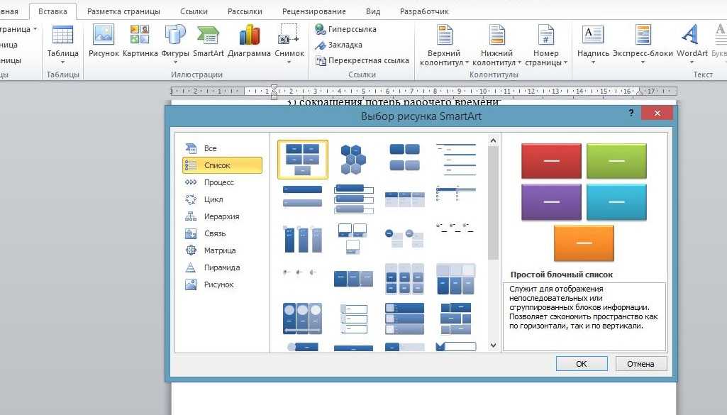 Рисунок 8. Создание списков с помощью SmartArt