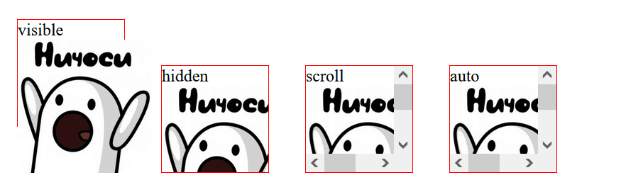 — при переполнении блока контентом добавятся полосы прокрутки;