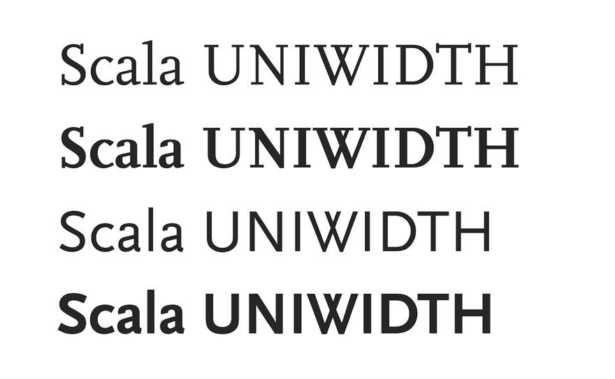 Семейство FF Scala – это классика печати. Спроектированный в 1991 году Мартином Майором, шрифт FF Scala с засечками в старом стиле был позже расширен версией без засечек, FF Scala Sans, основанной на общем скелете. Оба семейства имеют два веса (Regular и Bold) с соответствующим курсивом и двумя сокращенными стилями. Семейство FF Scala поддерживает расширенную латиницу и включает строчные и табличные цифры, надстрочный и подстрочный индекс, дроби, порядковые числа и фирменный набор декоративных стрелок.