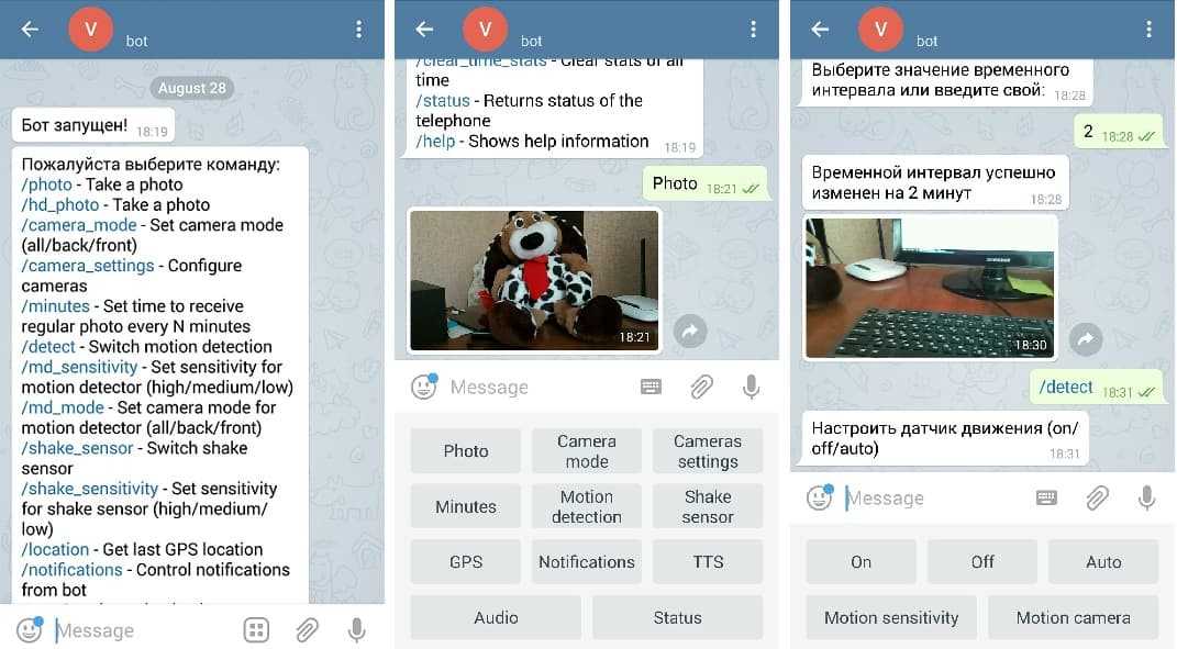 Дистанционное включение камеры телефона с Telephoto имеет как ряд преимуществ, так и недостатки. При заданной настройки определения движения, камера начинает автоматически делать серию фотографий, которые в конечном итоге загружаются как GIF-анимация. Но они настолько некачественны, что невозможно просто разглядеть лицо, да и вообще обстановку. А для улучшения качества и возможности автоматического переключения камеры нужно оплатить Pro-версию.
