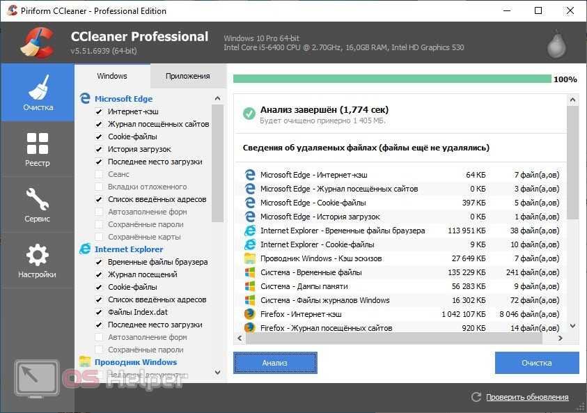 Теперь необходимо выполнить очистку компьютера с помощью утилиты CCleaner. Она позволяет избавиться от временных файлов и ошибок реестра, которые связаны с Yandex.Browser. Поочередно выполните удаление данных с помощью раздела «Очистка», а затем исправьте ошибки во вкладке «Реестр».