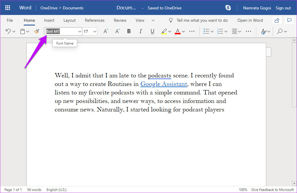 Теперь введите имя шрифта в текстовое поле для шрифта, нажмите Enter и вуаля! Вы сразу увидите изменение. Сделайте это для всех шрифтов, которые вы хотите использовать в этом конкретном документе. И всякий раз, когда вам нужно переключиться, вы можете просто выбрать тот из раскрывающегося списка.
