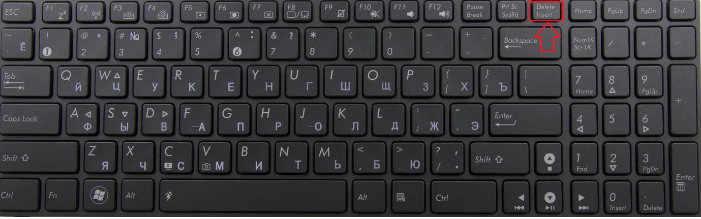 Клавиша «Insert» расположена слева от кнопки «Home» и выше кнопки «Delete».