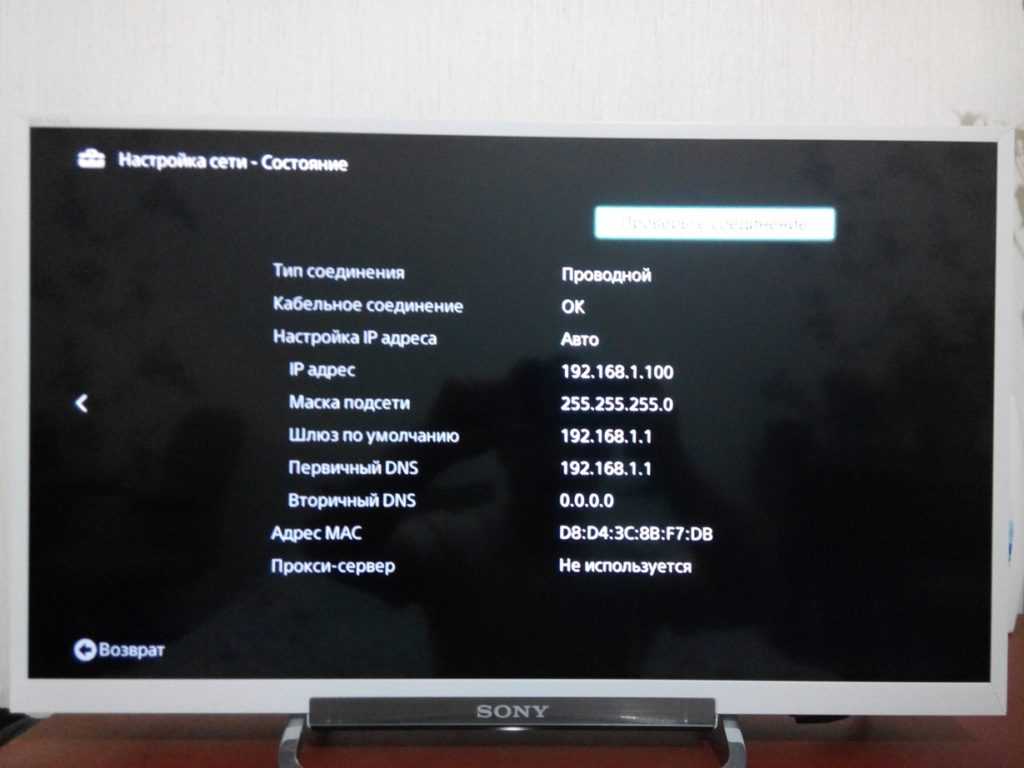 - проверьте значение ай-пи ТВ и шлюза в показателе «Состояние настроек сети»;