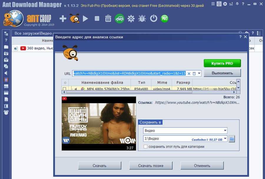 Ещё один универсальный загрузчик файлов с возможностью скачивания видео с YouTube — Ant Download Manager.