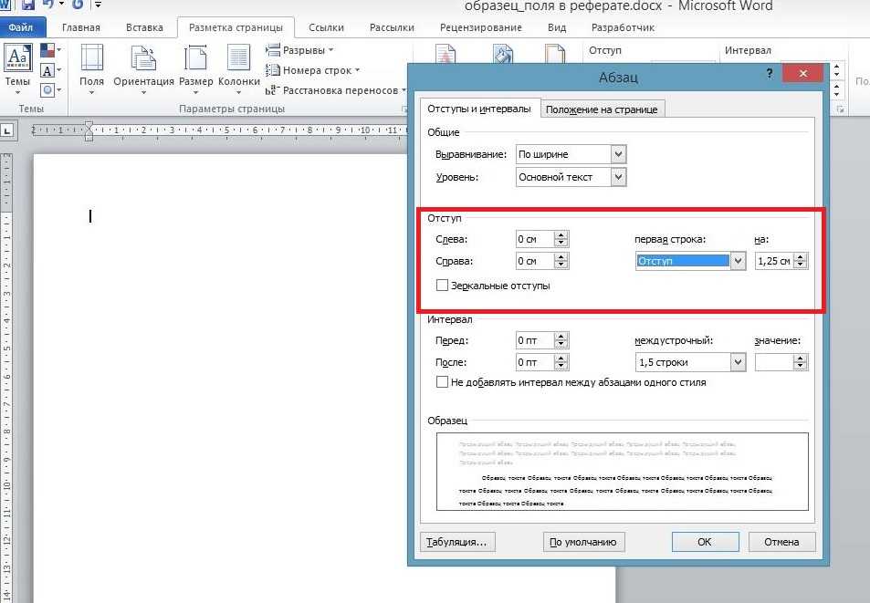 Как сделать отступ в Word – Абзацный отступ 1,25 первой строки в ворде