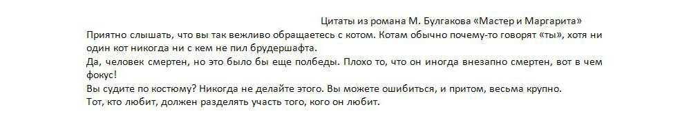 Вот пример текста, состоящего из нескольких цитат, где интервал между абзацами не используется: