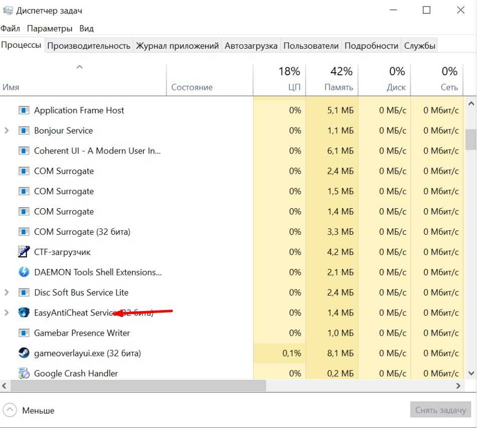 Чтобы Паладины стартовали, античит должен работать. Если антивирус его принудительно остановит, игра не запустится. Проверяем работу античита через диспетчер задач. Если он работает, то в разделе «Фоновые задачи» должна быть соответствующая строчка:
