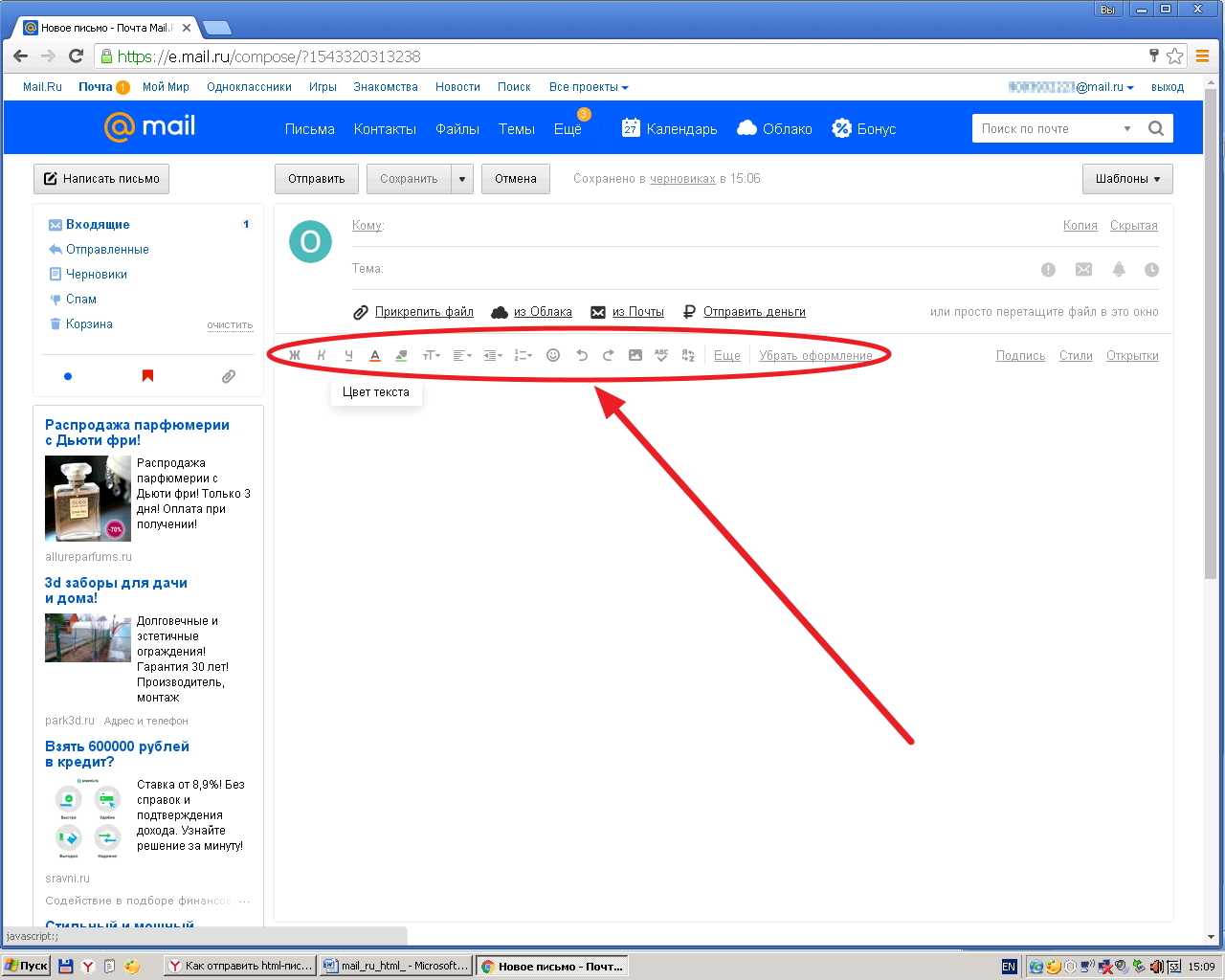 Опции почтового сервиса предоставляют возможность красиво и наглядно оформить текст, так, например, как это можно сделать в текстовом редакторе.