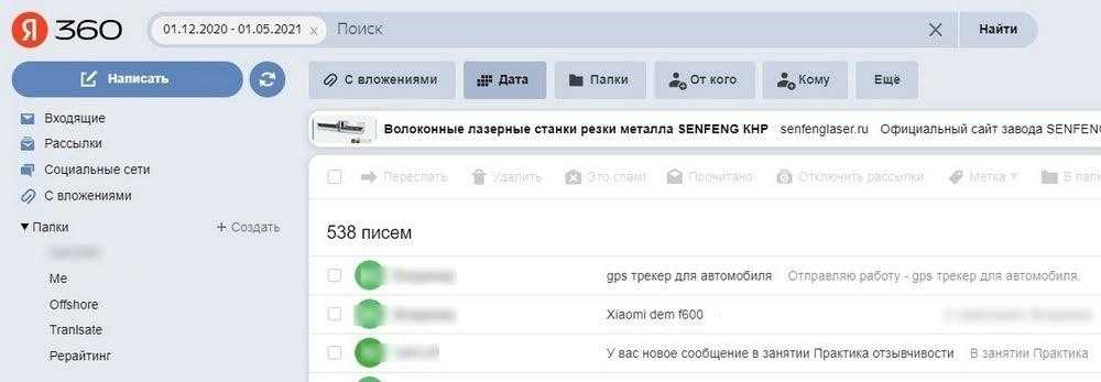 Кроме того, в Яндекс почте есть возможность сортировки писем по дате. Для этого выберите раздел «Входящие», «Отправленные» или другой нужный раздел и нажмите на заголовок колонки «Дата». Таким образом, письма будут отсортированы по дате в порядке возрастания или убывания.