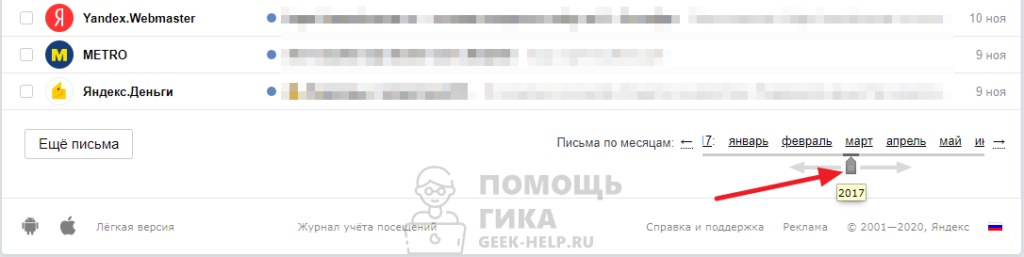 -Далее сервис покажет все письма за указанную дату и за дни до и после этой даты, вам останется только найти своё заветное письмо в списке.