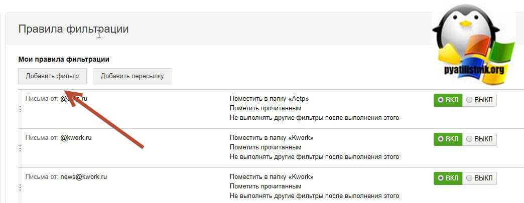 - Применить к письмам в папках, я обязательно ставлю эту галку, чтобы перебрать уже полученные письма. Нажимаем сохранить.
