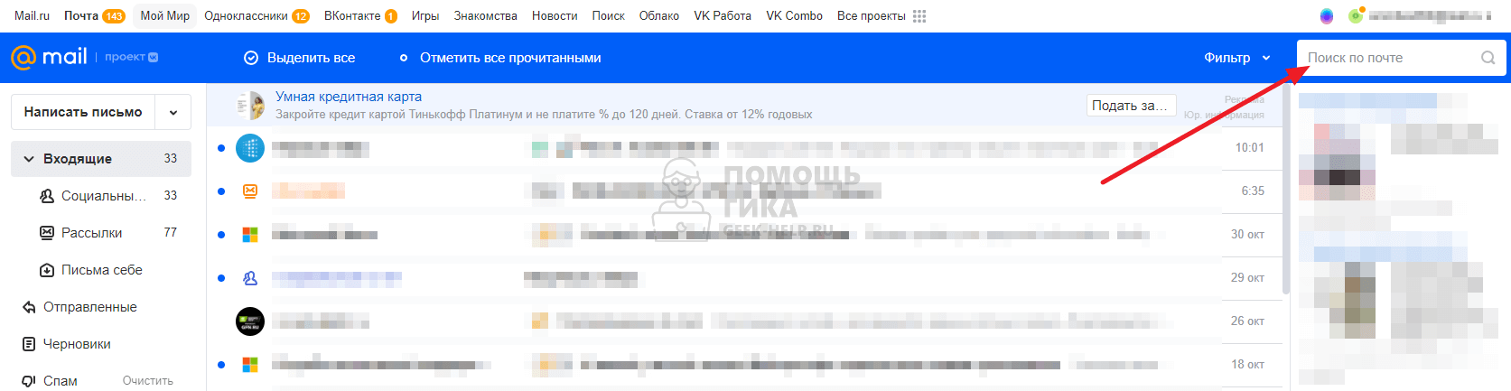У компании Mail.ru также имеется свой бесплатный почтовый сервис. Давайте разберемся с процессом нахождения сообщений здесь: