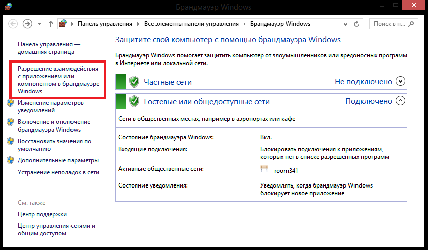 - Затем в открывшемся окне выберите пункт «Разрешения взаимодействия с приложением или компонентом в брандмауэре Windows».