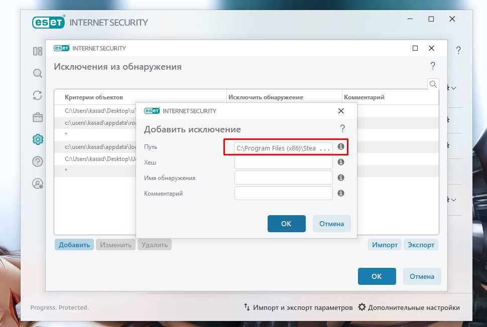 - Поместите папку с клиентом в список исключения вашего антивируса. Для этого сделайте следующее (на примере, Total Security):