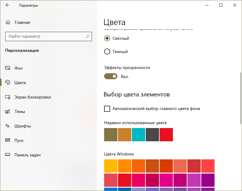 Рис. 6. Прозрачность в Windows 10 отключена.