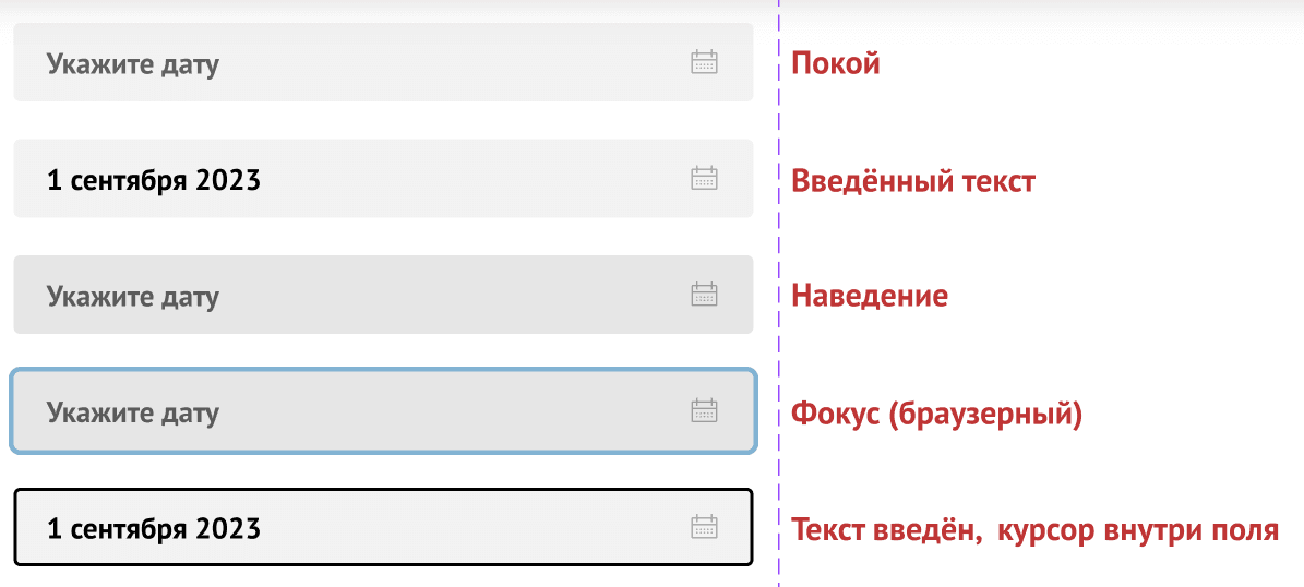 Рекомендуется обязательно указывать состояния , и для всех интерактивных элементов, с которыми взаимодействует пользователь. Это позволяет создать доступный и понятный интерфейс.