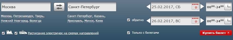 - дата и время обратной поездки (если требуется посмотреть расписание для поездки туда и обратно).