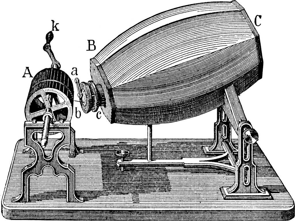 Вопреки распространенному заблуждению, фонограф Эдисона не был первым в мире звукозаписывающим устройством: до фонографа существовал фоноавтограф. В 1857 году французский изобретатель Эдуард Леон Скотт де Мартенвиль даже получил на него патент. Самой массивной частью фоноавтографа был акустический конус, который служил для улавливания и усиления звука. Звуковые колебания передавались на мембрану, соединённую с иглой. Под действием звуковых волн мембрана вибрировала, а игла колебалась, прочерчивая отметки на закопчённой бумаге или стекле, которые в данном случае можно назвать первыми в истории звукозаписи физическими носителями. Проблема у фоноавтографа была всего лишь одна: он мог записывать, но не мог воспроизводить звук. Запись, сделанную на этом устройстве, можно было только разглядывать (что и предполагалось использовать для научного изучения акустических волн). Проблема воспроизведения этих записей была решена в 2008 году методом оптического сканирования. В результате восхищенные слушатели впервые смогли услышать 10-секундный звуковой фрагмент: изобретатель устройства исполняет французскую народную песню «Лунный свет». Да, это самая старая аудиозапись в мире.