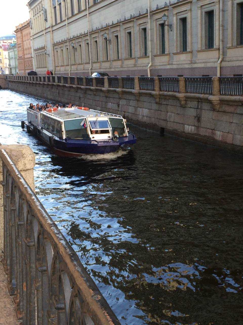2. Туристы на корабликах выдвигаются к Неве по реками и каналам Петербурга.