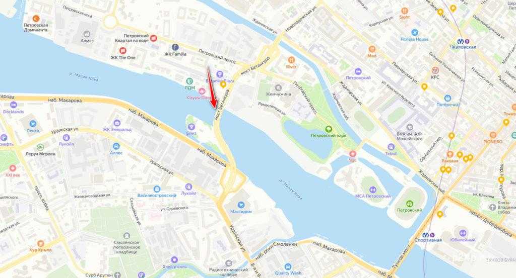 А с Васильевского острова на Петроградскую и обратно сторону можно попасть по мосту Бетанкура.