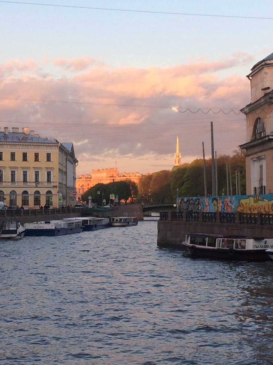 Идем дальше прямиком к Дворцовой набережной. А между тем туристы на корабликах плывут белой ночью к Неве по реками и каналам Петербурга.