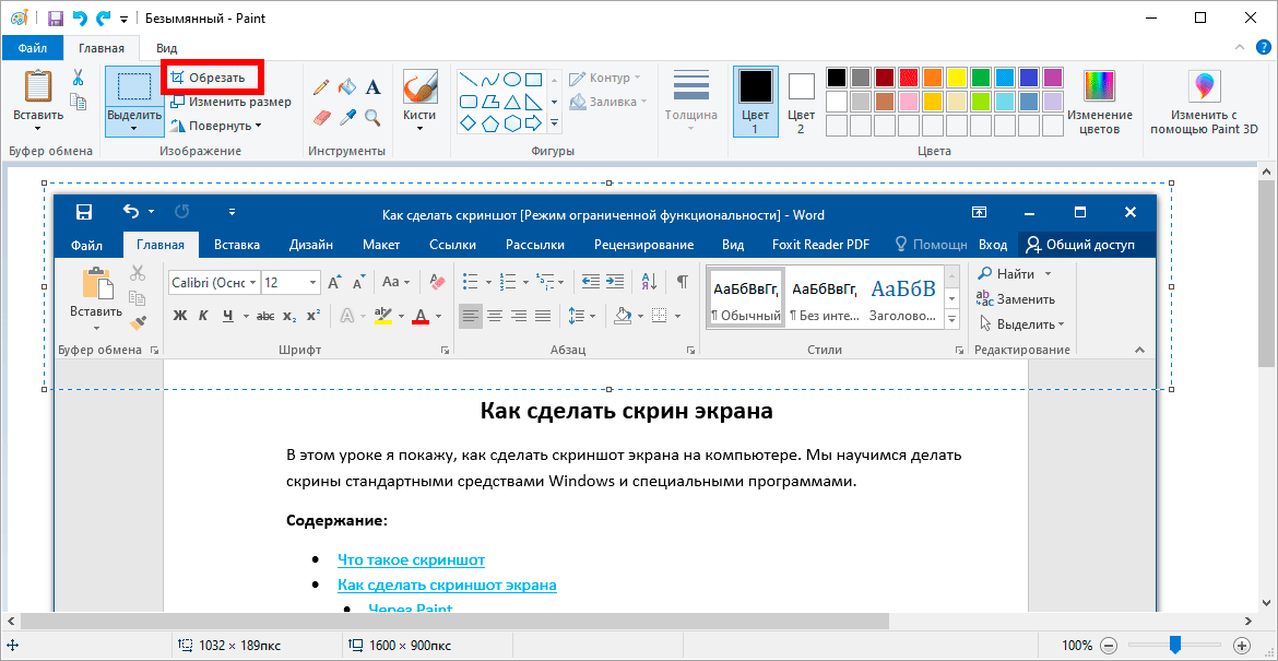 - Вставить получившееся изображение в графическом редакторе или куда-либо ещё.