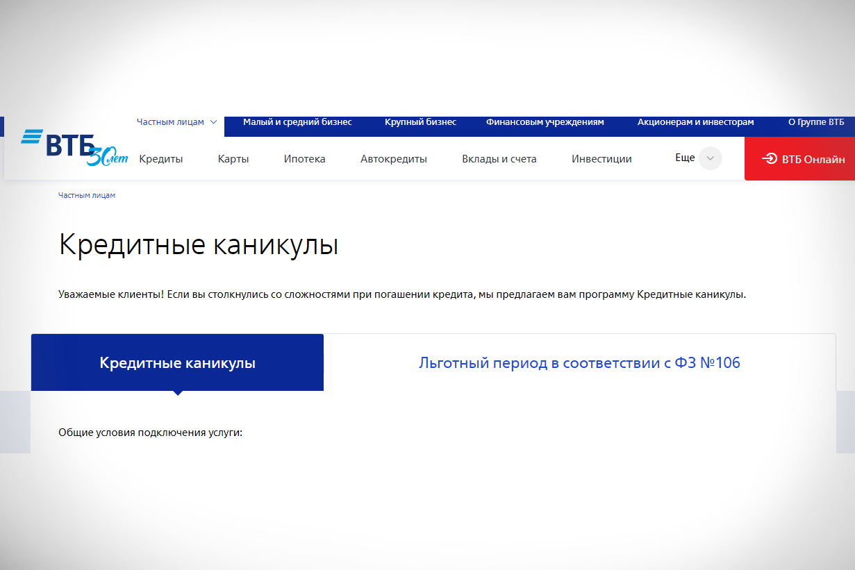 Как взять кредитные каникулы в ВТБ