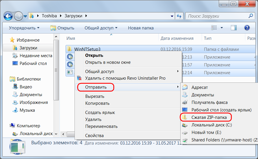 - Нажимаете правой кнопкой мыши по созданному архиву