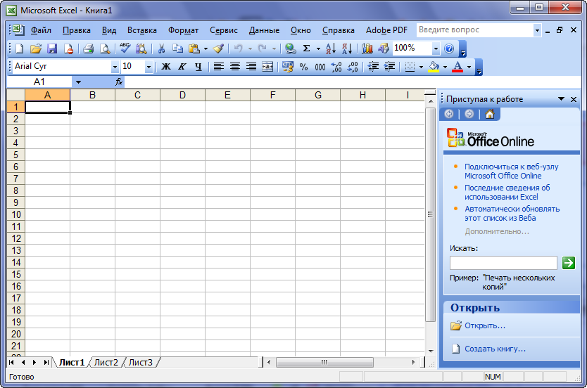 Если вы с успехом прошли предыдущие испытания, то вы сможете лицезреть прекрасное, а именно интерфейс программы Эксель, вот так он выглядит:
