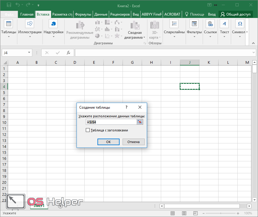 - Сразу после этого у вас появится окно, в котором нужно указать диапазон будущей таблицы.