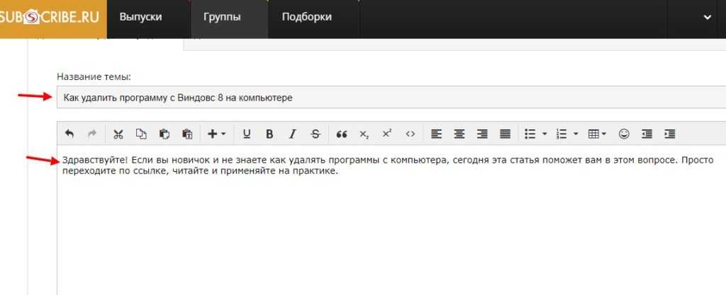 В редакторе пишете название темы, например, укажу название своей статьи – «Как удалить программу с компьютера». Затем пишу описание (картинка 5).